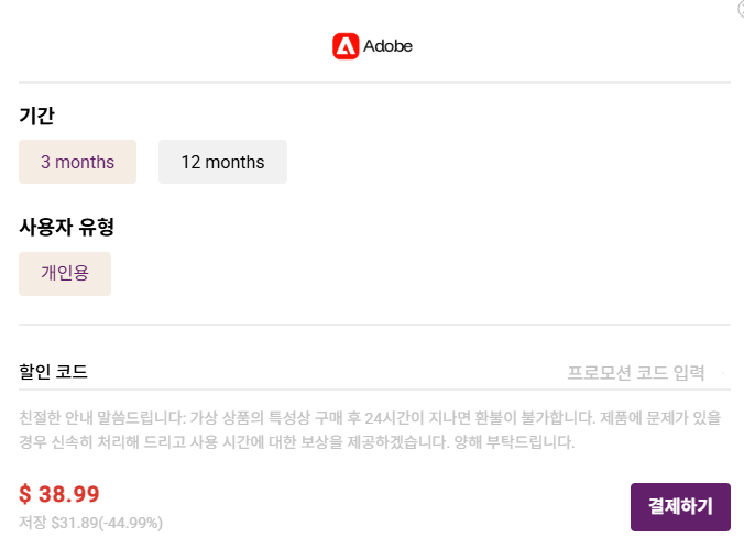 어도비 한달 구독가격으로 3개월 이용 가능